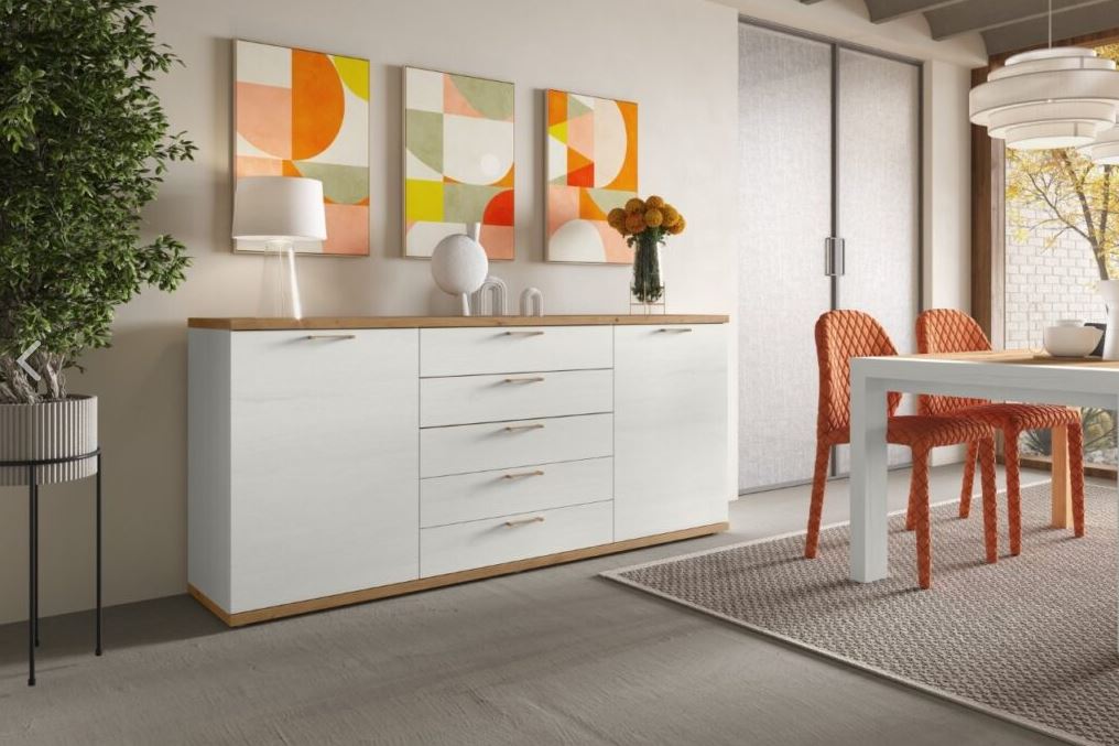 Aparador 2 puertas + 5 cajones color artisan y roble natural