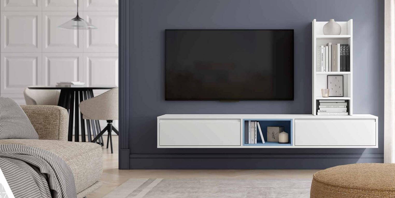 Mueble de salón color blanco y azulón
