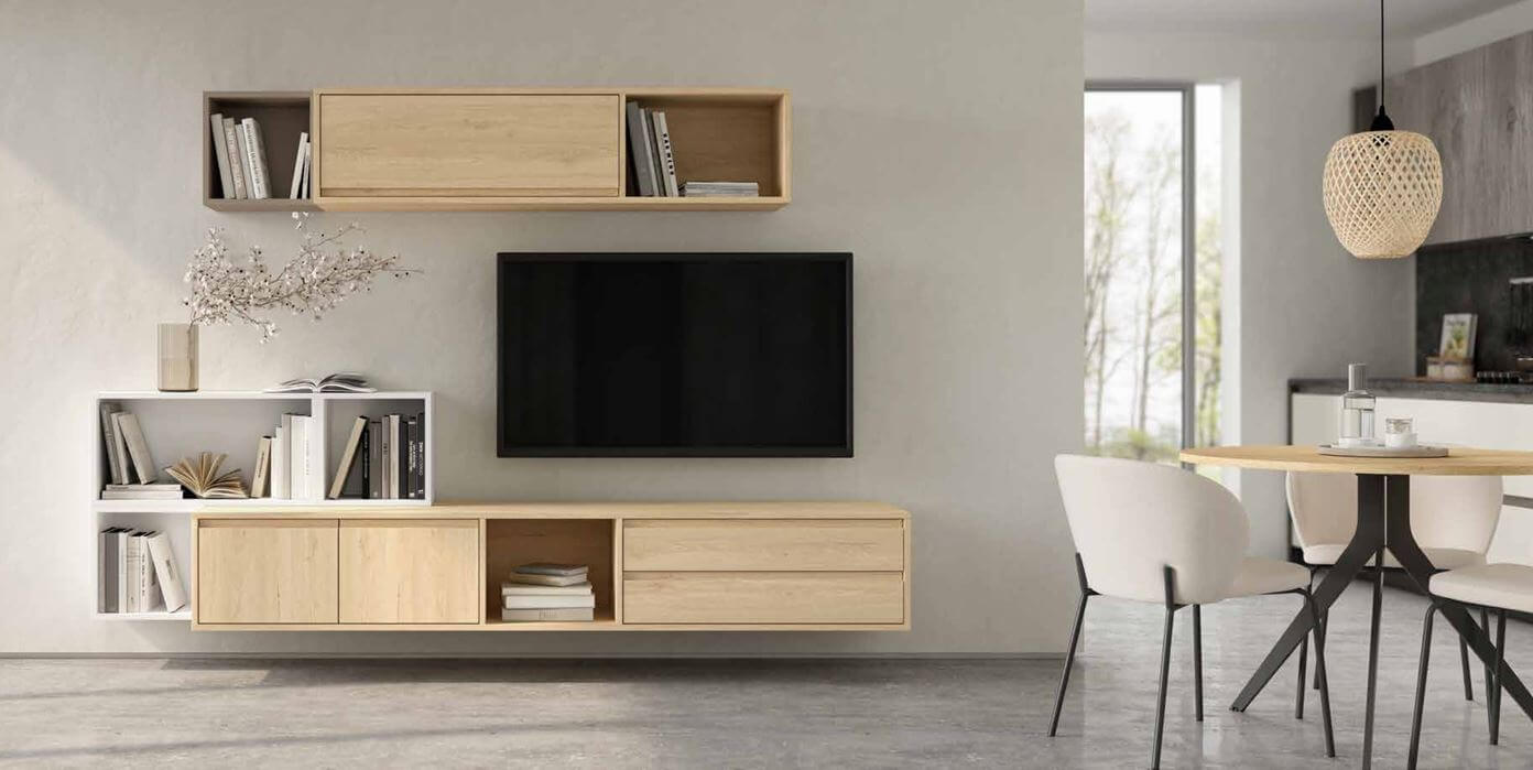Tenemos un sinfín de posibilidades diferentes para el salón: muebles tv, prácticas estanterías, vitrinas para lucir cristalerías