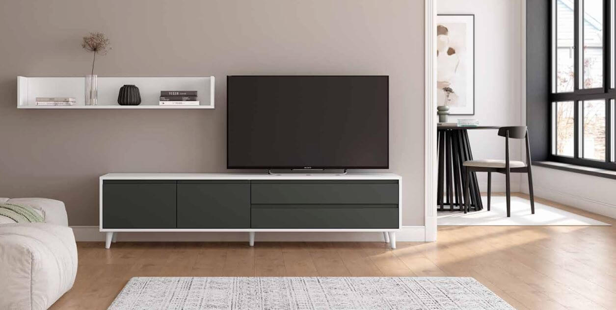 Mueble de salón color blanco y grafito
